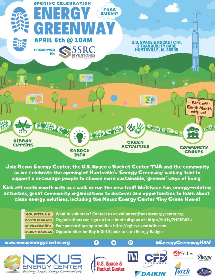 We have been invited to host a table and workshop at the U.S. Space and Rocket Center for the Energy Greenway Ribbon Cutting celebration!