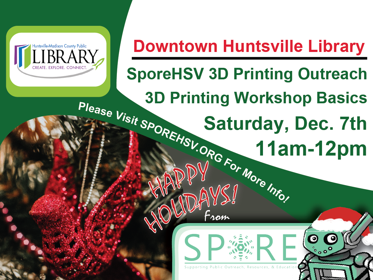 We are hosting a free Christmas Themed hands-on workshop for learning the basics of 3D modeling for printing. This class will take place Saturday December…